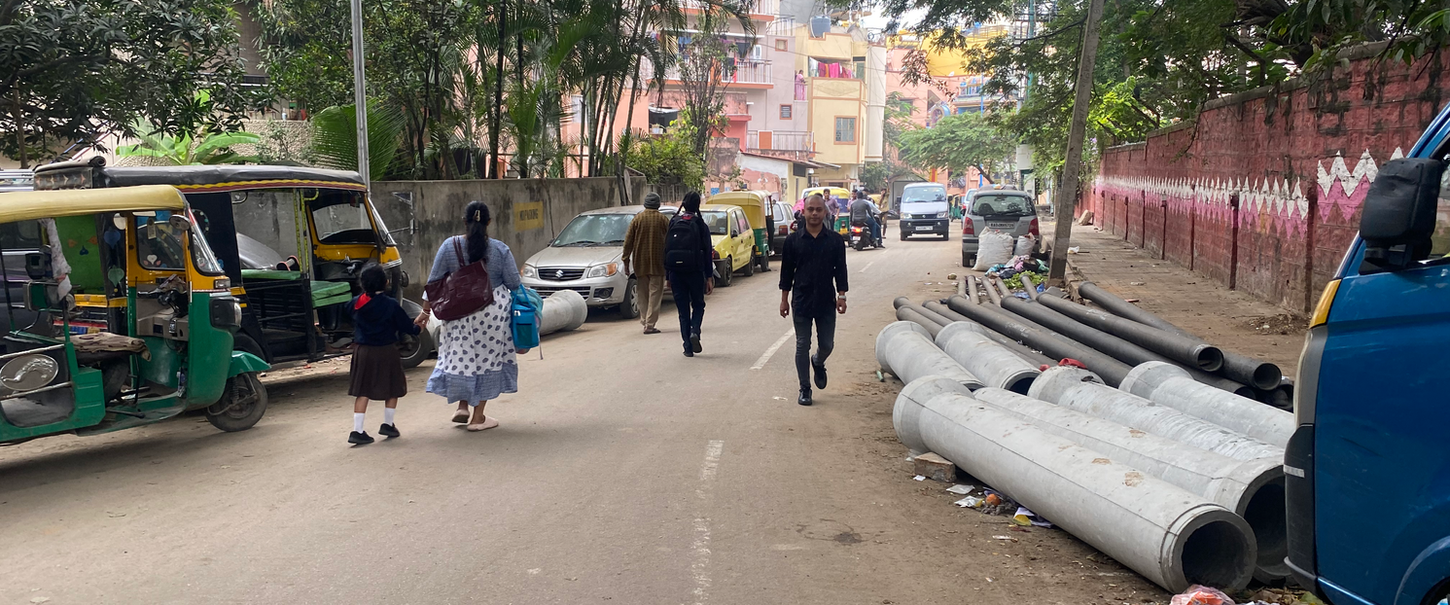 • Footpaths are dirty, broken, and blocked by cars and vendors.