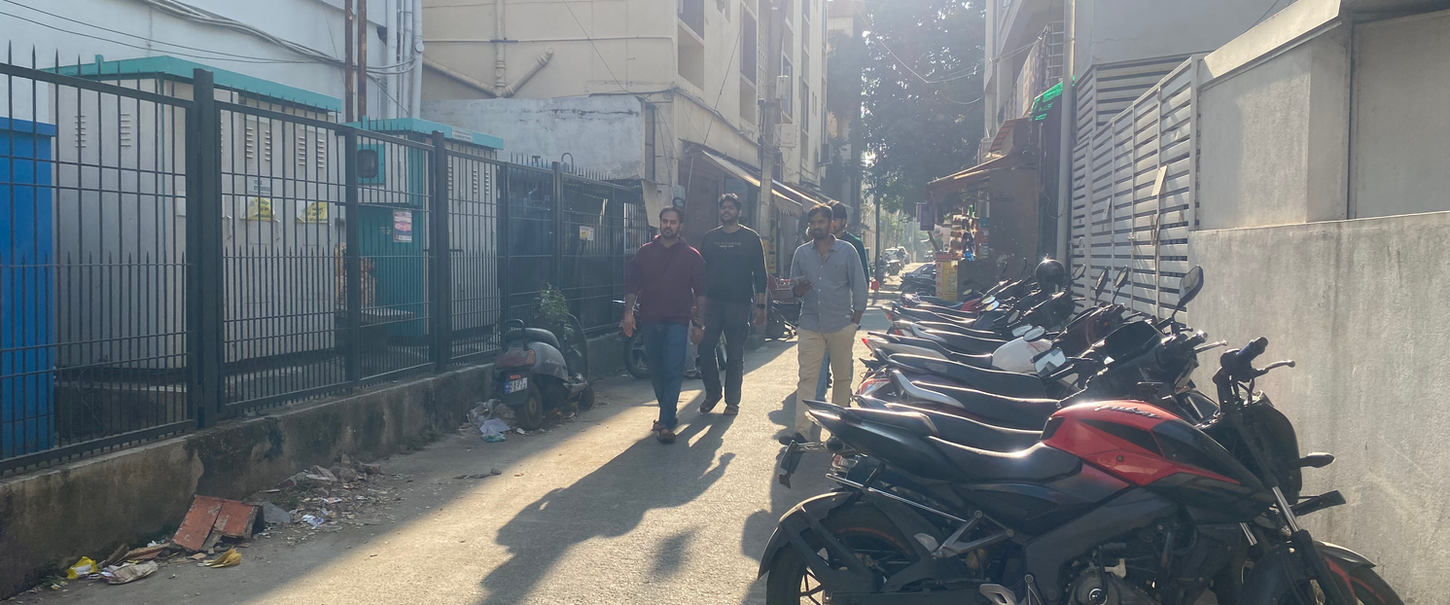 The site is the 300m conservancy lane between Anjaheya Temple Street and Netta Kalappa Circle, with the pilot area proposed for a 100m stretch, until D V Gundappa Road. The conservancy lane is already paved and used by residents as an access road by pedestrians and vehicles.