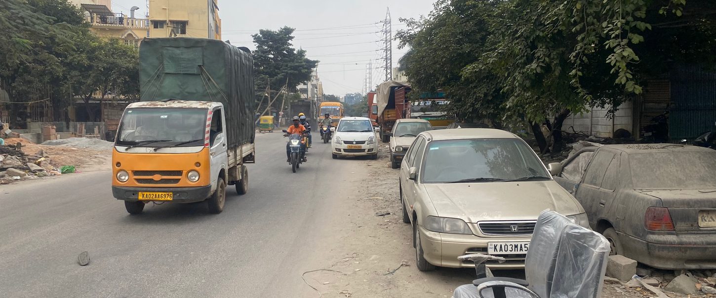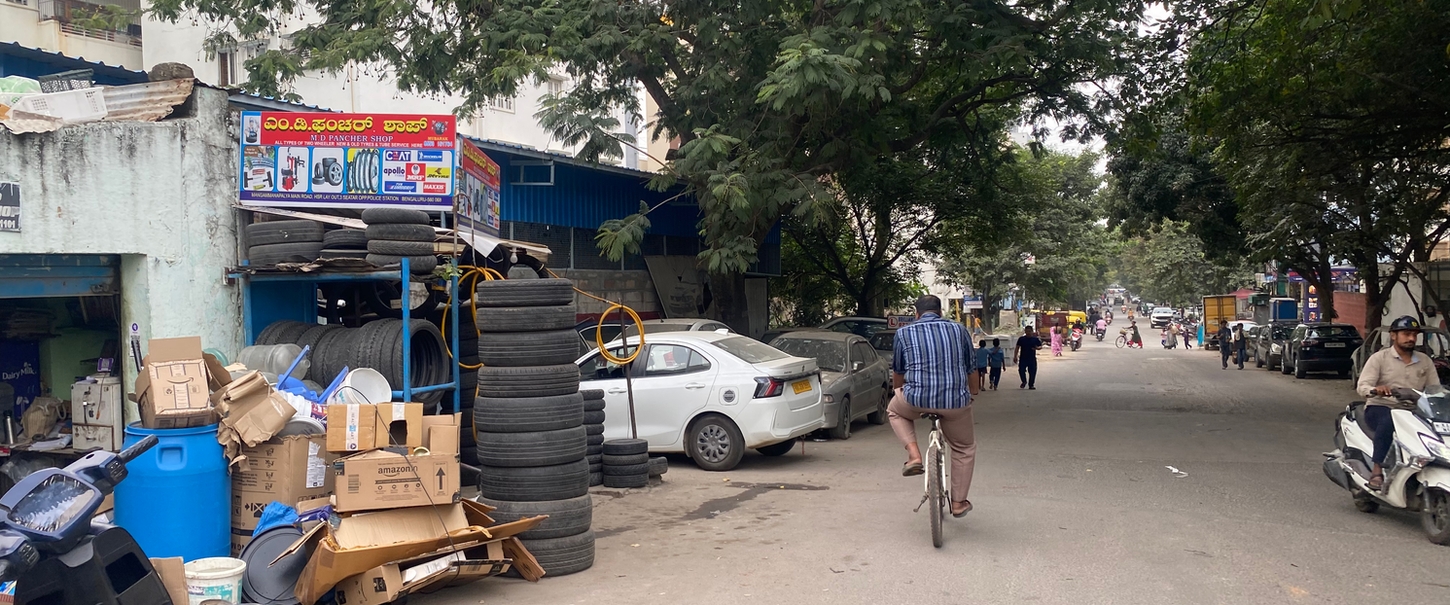 A 950m stretch of three street segments (Indira canteen road, 27th cross road and 17th main road) in HSR Layout, connecting residential and commercial (mechanical garages, shops) areas as well as a government school with the only closest bus stop.