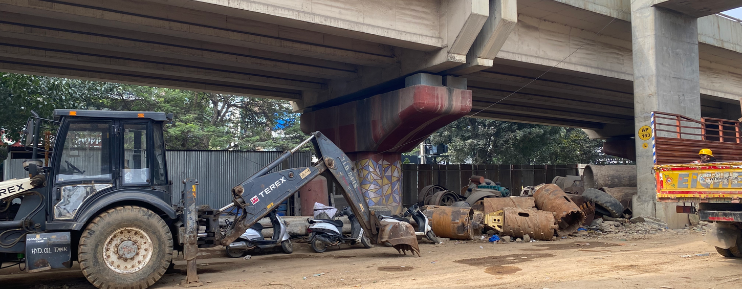 The site is a 280m long vacant space under the flyover located between two upcoming metro stations - HRBR Metro Station and Kalyan Nagar Metro Station. The entry to the site is from the 7th Main Road junction on Outer Ring Road, which is also a critical link between HRBR Layout and Chelekere Lake.
